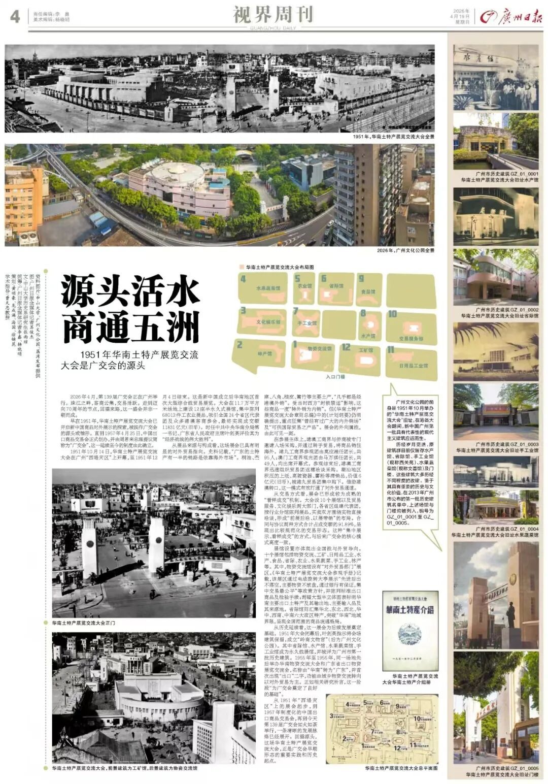 从历史延续看,这一展会为后续发展奠定基础。1951年大会闭幕后,叶剑英指示将会场建筑保留,成立“岭南文物宫”(后为广州文化公园)。其中省际馆、水产馆、水果蔬菜馆、手工业馆成为永久性展馆,并被评为广州市第一批历史建筑。1955年至1956年,同一场地先后举办华南物资交流大会和广东省出口物资展览交流会,名称由“华南”转为“广东”,并首次出现“出口”二字,功能由城乡物资交流转向以对外贸易为主。正如相关研究所言,这一阶段“为广交会奠定了良好的基础”。